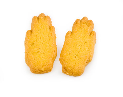 Handvormig boterkoekje met amandelen.