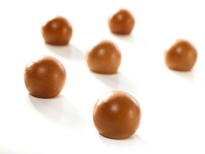 Sfera op basis van een zalige cremeux van caramel en chocolade.