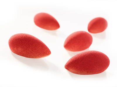 Mousse van frambozen en een vleugje aardbei met rood fluweeleffect.