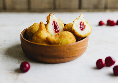 Een kroketje met binnenin de felrode kleur en het koppige zure van cranberry's.