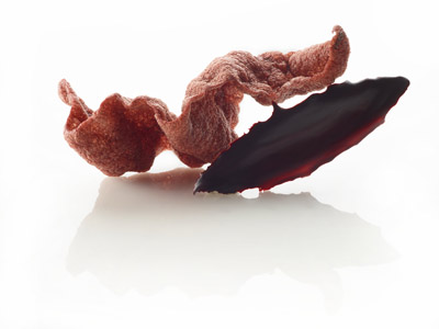 Gebruik de kroepoek chocolade als decoratie van een feestelijk dessert. Cacao geeft een sterke smaak en een mooie kleur aan deze zoete kroepoek op basis van tapioca. Kort frituren in plantaardig olie.